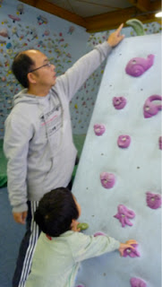 今回は幼児も体験可能なクライミング教室が開催されるというので、横浜まで出てきました。結構本格的なクライミングウォールがありましたよ(^^)。